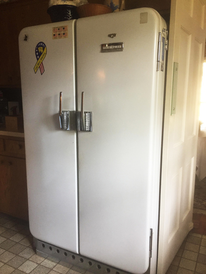 Холодильник Frigidaire производства времён Второй мировой войны. Кубики льда в комплекте.