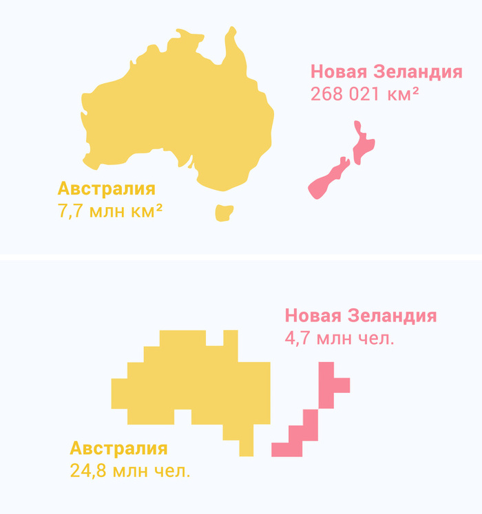 Несмотря на то, што Австралия отхватила себе звание континента - она едва больше Новой Зеландии.