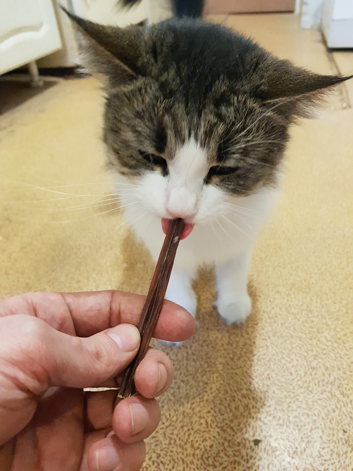И, конечно же, не забыт мой кот. Сразу же угостил его вкусняшкой.