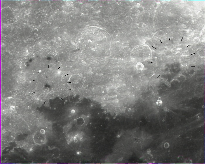 «Город» известен давно, но исследован явно недостаточно, а что там под ним находится, можно только гадать. Вопросов много, ответов мало, поэтому спорить - не переспорить! Окончательный ответ на все вопросы мы получим, когда там покопаются Астроархеологи, но это наверное, будет не скоро! Эту тему ещё долго будут обсуждать и с тем же результатом, что во времена Грюйтуйзена. Лично я считаю, что этот объект перспективен для исследования. Надо с ним разбираться по мере возможностей. Вот я и сделал такую попытку! Обнаружив непонятные «кольца» на Луне, решил глянуть и на этот район. Долго смотреть не пришлось, «кольцо» в этом районе было обнаружено сразу. И вот что интересно: оно видно гораздо больший интервал времени, чем парочка «колец» у Альфонса. Логично было предположить, что и это колечко видно за счёт выброшенной из глубины породы, в которой мало катафотирующих стеклянных шариков и порода гораздо темнее той, что слагает нетронутую поверхность в этом районе. Гипотеза о «кольцах» как о видимом проявлении «подповерхностных» искусственных объектов, при создании которых была вынесена на поверхность глубинная порода, получила некоторое подтверждение.