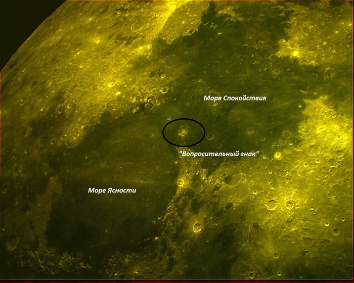 Луна является объектом непростым для наблюдения с Земли! К интересным объектам можно прибавить и вопрос о деталях лунной поверхности на вид явно «неприродных». Например, на Плато Архимед при определённых атмосферных условиях, когда чёткость картинки понижена, при подходящих условиях освещения на склоне лунного дня, можно увидеть вполне чёткую латинскую букву «L» А в кратере на границе Моря Спокойствия с Морем Ясности вполне хорошо видно вопросительный знак! (Правда, в «зеркальном» виде, но и на том спасибо!) А там просто «дырка» в центральной горке! То же касается кратера Тимохарис, там тоже видна «дырка». Вот дела! Проклятые астероиды целят именно по центральным горкам кратеров!