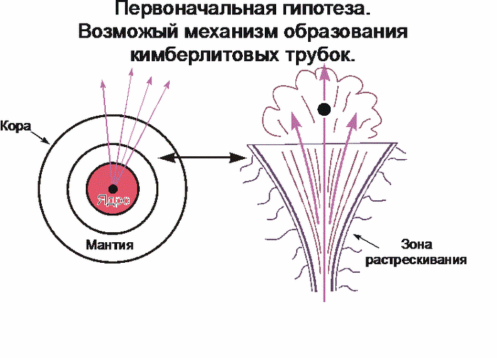 Если у Земли есть небольшое нейтронное ядро, то оно может проявлять некую активность, «стреляя» кусочками сверхплотного вещества. Тогда пробоины от них могут быть «кимберлитовыми трубками», объяснить происхождение которых обычным вулканизмом, мягко говоря, затруднительно.