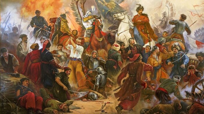 Пока жители Русского царства развлекались созданием будущего памятника российского законотворчества, юго-западнее тоже происходили захватывающие события. Некий гетман, Богдан Хмельницкий, поднял восстание. Взял и заявил: «Казачество не хочет быть под пятой Речи Посполитой. Вообще под пятой быть не хочет. До свиданья, мы уходим». Речь Посполитая удивилась, что за выходки: «Куда это вы намылились? Да кому вы там нужны?». А Хмельницкого уже не остановить, взял, да и написал письмо Алексею Михайловичу. Так, мол, и так, вы привлекательны, мы тоже ребята ничего, давайте жить дружно. Царь письмо то получил, но сделал вид, что не получил, потому что еще не знал, какое решение ему принять. То ли ввязываться, а это война с поляками, то ли не ввязываться, а войны и земель немножко хочется. Взял паузу, типа, абонент пока не абонент. Тем временем, казаческая восстанческая активность уже вовсю росла. Подумал еще чуточку Алексей Михайлович и говорит: "Была не была! Так и быть, полякам войну, а запорожцев включим в себя. Станем большой крепкой семьей. Заживем!"