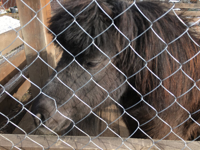 Мы решили дозированными шагами дойти до зверей. От Оруэлла там больше, чем от зоопарка. Любимец публики - пони Пушкин. Справедливо. Жуёт предложенную, с одобрения смотрителя, морковь с аппетитным хрустом так, что руки хочется спрятать поглубже в карманы.