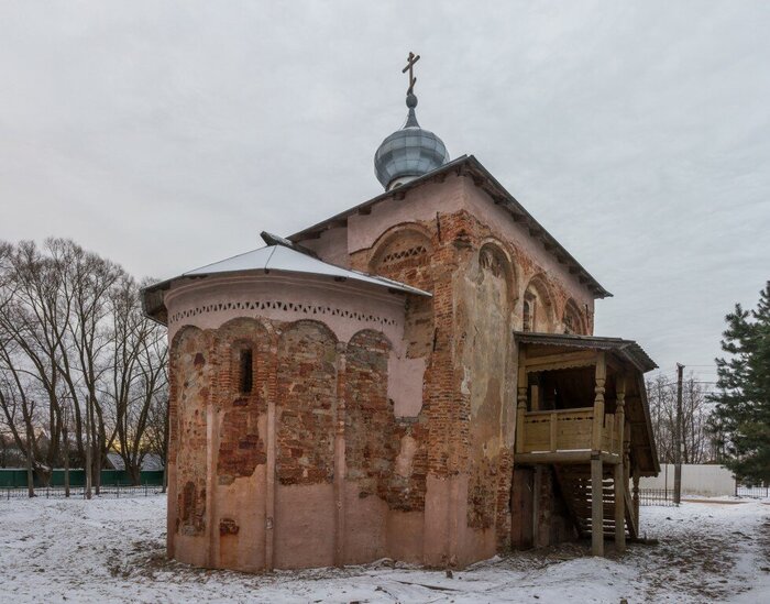 Так что продолжили движение по направлению дальше, к предмету особой гордости Старой Руссы - Церкви Мины Мученика. На первый взгляд - развалюха, прости господи. И вряд ли заслуживает внимания. Но информация о том, что она стояла ещё при Смуте, заставляет поменять отношение. А легенда, связанная с ослеплением воинов Делагарди, въехавших в церковь на лошадях во время шведского вторжения, одновременно вызывает и восхищение, и желание унести ноги к следующему номеру программы - дому-музею Достоевского.