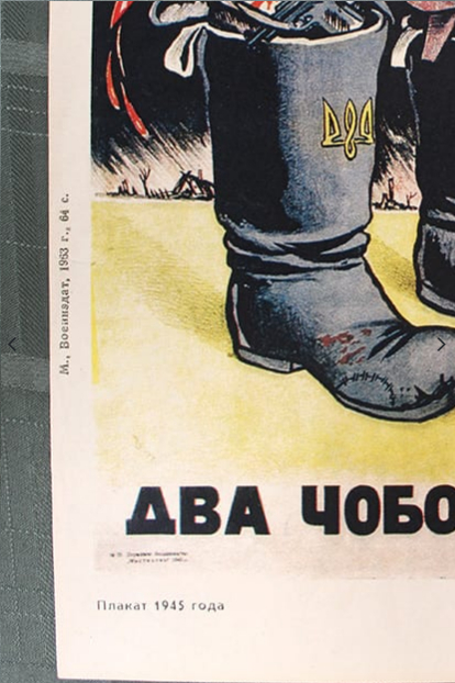 Кстати, занятно на голове у солдат то ли штальхельм, то ли вообще ГДРовцы изображены, правда зеленоватые больно. Надпись на тенте в лучших традициях клюквы РОССИR. Они там че плакаты холодный войны раскопали и подправляют их?