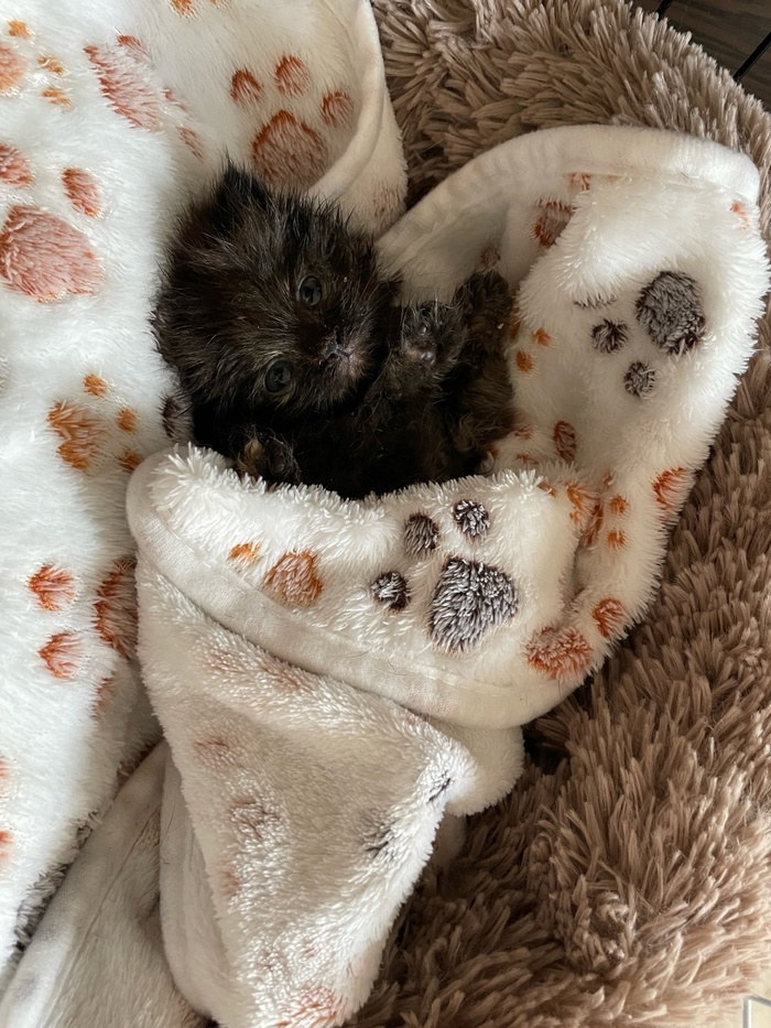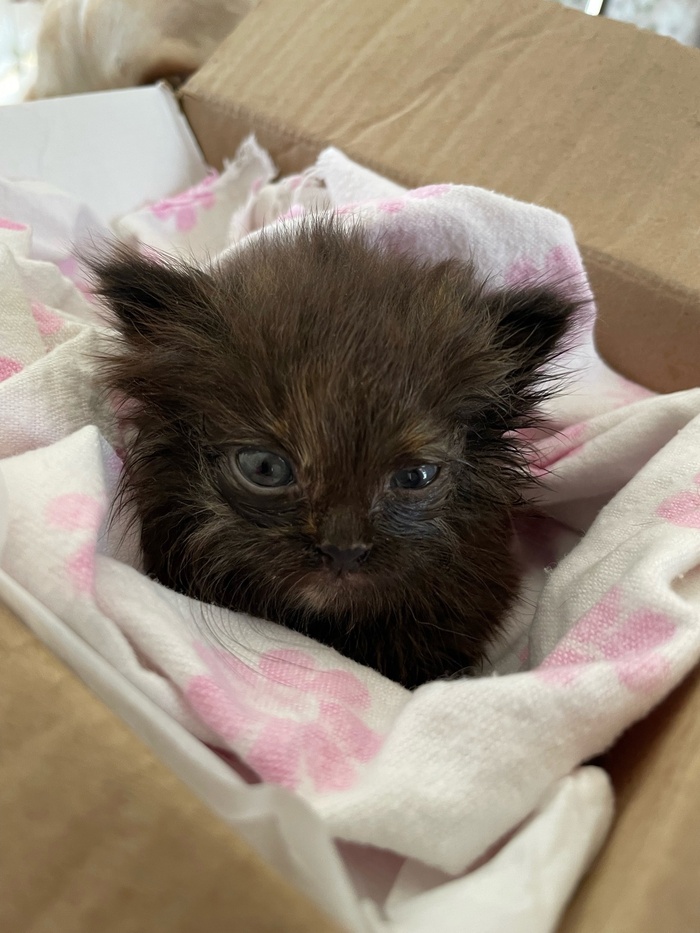Котенок выжил, не смотря на тяжелое состояние. Это были сложные пара дней, но результат стоил того. Оказалась очень ласковой и активной девчонкой.