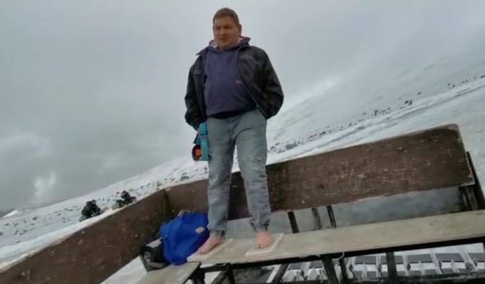 Житель Челябинска Алексей Семушев поднялся на Эльбрус и там установил мировой рекорд. Он простоял на гвоздях 31 минуту при температуре -2С.