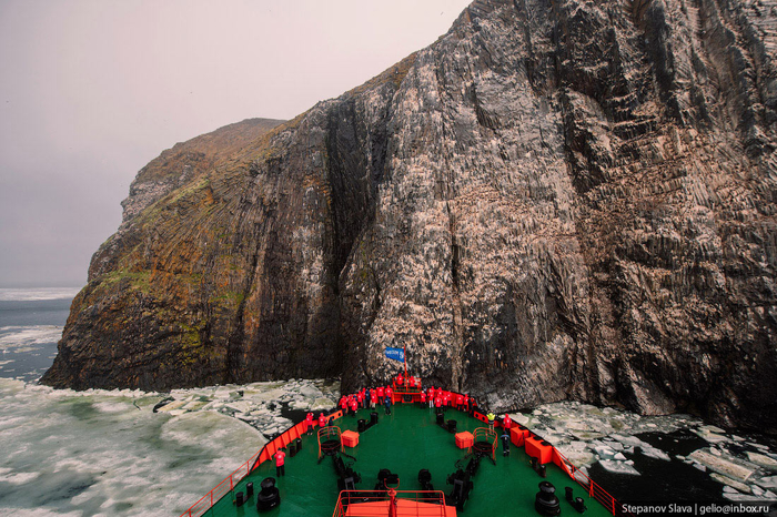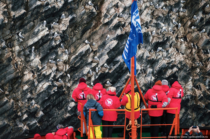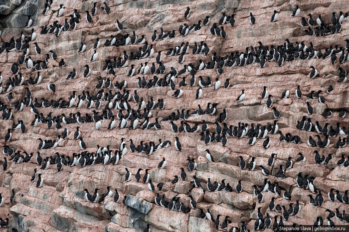 Птичий базар на скале Рубини. Это самый крупный птичий базар Земли Франца-Иосифа.