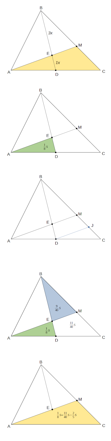 9. S△AMC = S△AED + S▢DEMC = 1/8 S + 11/40 S = 16/40 S = 2/5 S