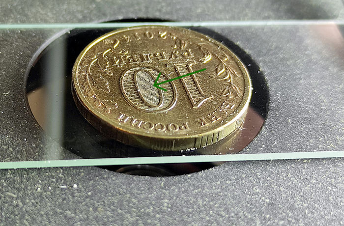 Ну и напоследок монета 10 рублей. Вот так она выглядит на предметном стекле: