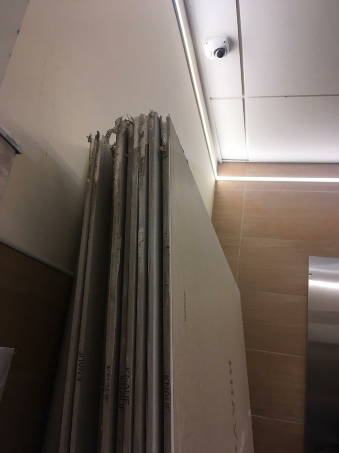 На замечания о разбитых поверхностях ГКЛ экспедитор и грузчики ответили, что в нашем доме низкие потолки и дверные проемы. Наименьшая высота дверных проемов на первом этаже нашего дома 2000 мм, листы ГКЛ грузчики выносили под моим присмотром, не задев ни одного проема, из чего можно сделать вывод о том, что их показания не являются достоверными.