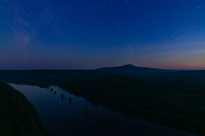 "Так сложились звезды"-эта фраза, которую одно время часто произносит мой друг, плотно сидит у меня в голове. В ту ночь звезды и правда сложились очень удачно: небо было чистым, засветка неба была небольшой, погода была настолько теплой, что палатки ставились просто для хранения вещей, принесенных на вершину камня Ветлан.
