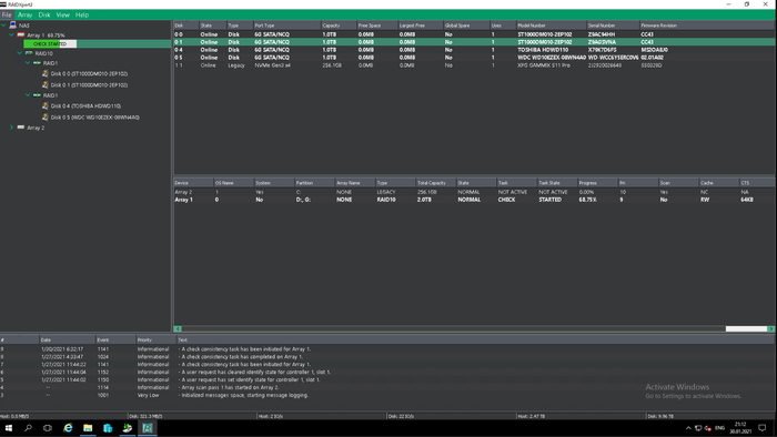 Предварительно был обновлён биос, собран 1-й рейд из двух дисков 2,5 на 500 гб.