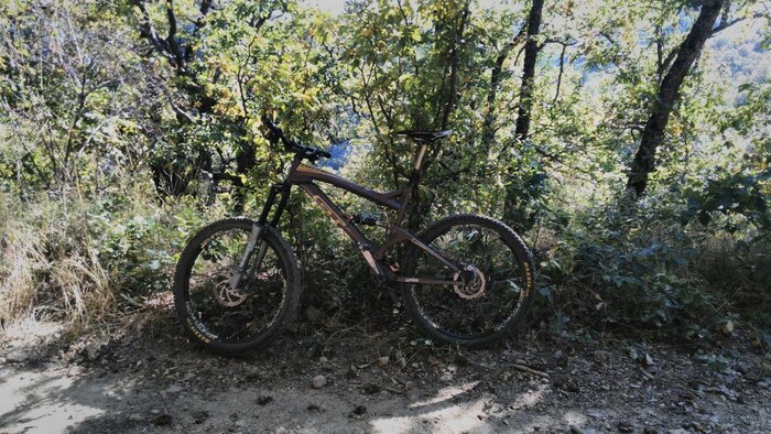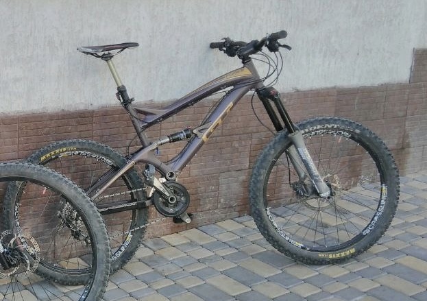 Приметы: Рама размер L, цвет фиолетово-коричневый, на раме царапины, вилка марзоччи вроде бомбер АМ 160, колеса мавик кросслайн.