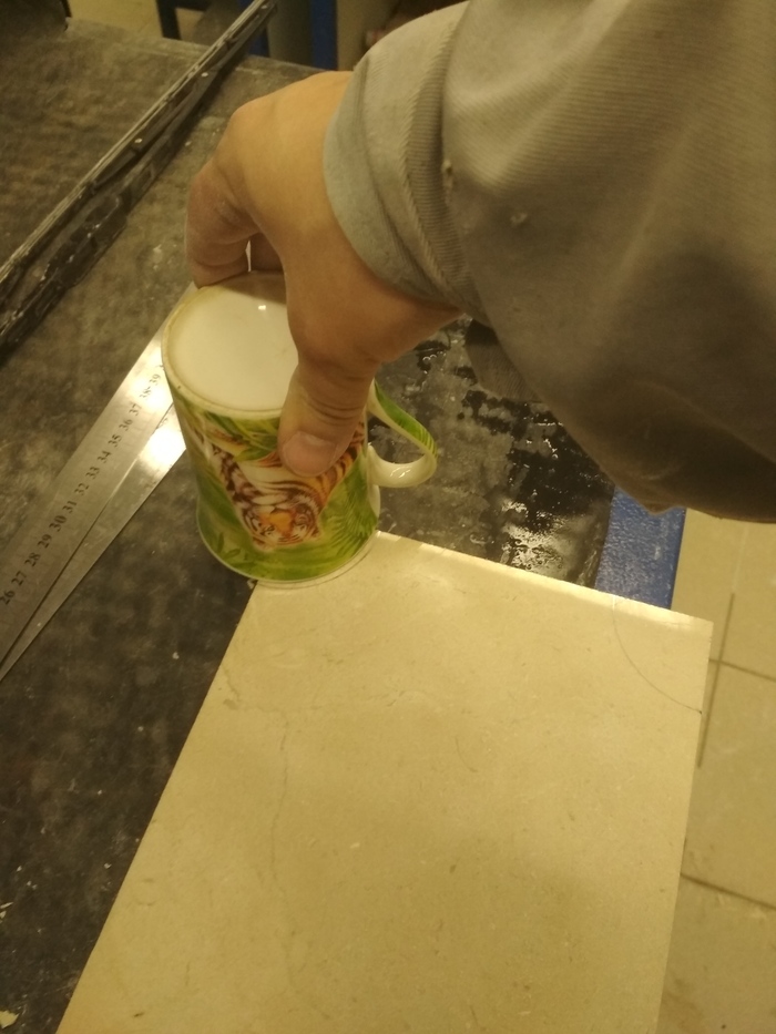 Далее мы отпиливаем камень по размеру и начинаем размечать. Кому как удобно, я размечал кружкой вырезы по краям. После фрезеруем деталь для создания профиля по контуру.