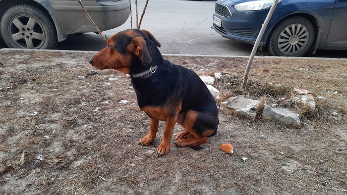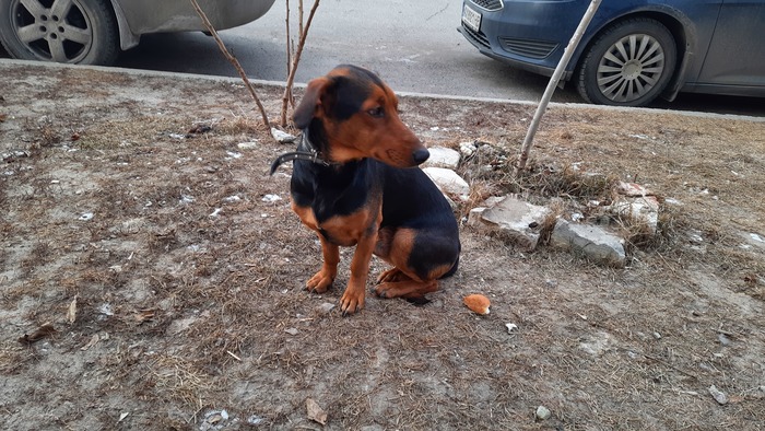 Спешил по делам, смотрю собачка дремает, с ошейником, ухоженная, ну думаю ладно, мало ли. Назад тем же маршрутом через несколько часов, она на том же месте и уже кусочек хлеба кто-то положил ей. Видно что домашняя, или потерялась или может кто-то оставил... На улице мороз -7, она вся дрожит...