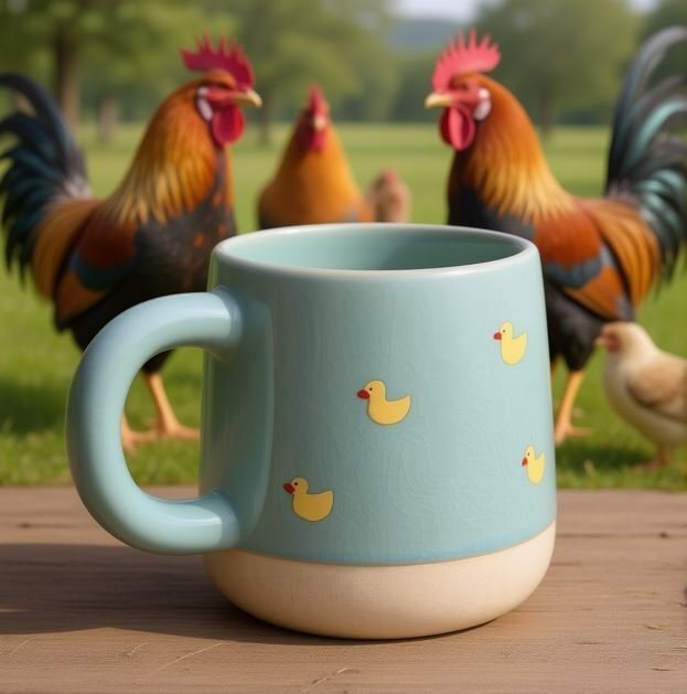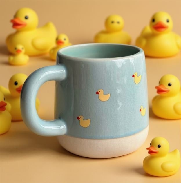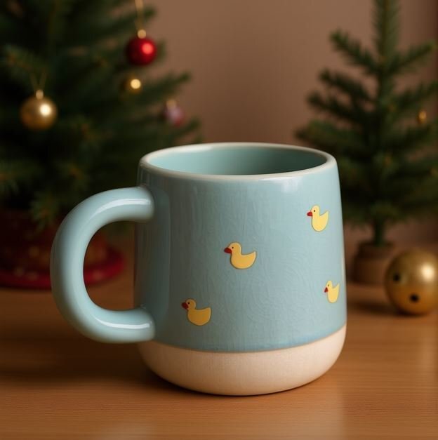 В этом варианте нейросеть сама решает, какой будет цвет, размер, материал и стиль кружки.
