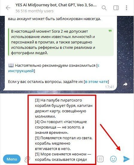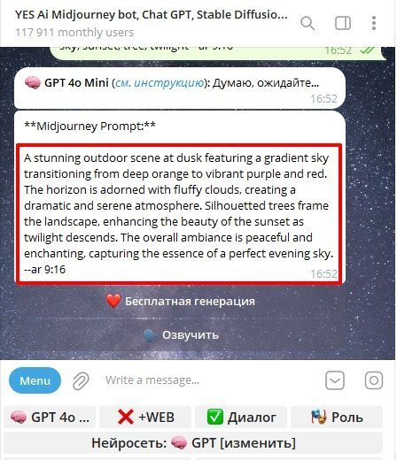 3. Зайдите в этого бота с поддержкой нейросети для генерации промптов, изображений и видео, прикрепите скриншот.