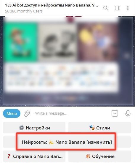Открываем Yes Ai Bot, где работает нейросеть Nano Banana Pro.