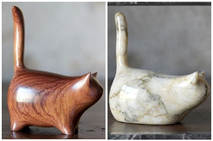 Деревянная фигурка → изделие из полированного мрамора