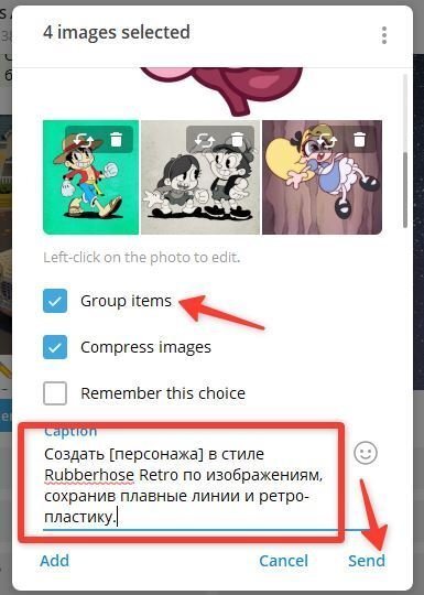 Загружаем подготовленные референсы и прописываем промпт.