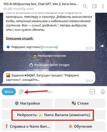 Шаг 1. Переходим по ссылке Yes Ai Bot и нажимаем на скрепку.