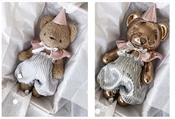 Преобразовать мягкую игрушку в металлическую миниатюру с мягкими отражениями.