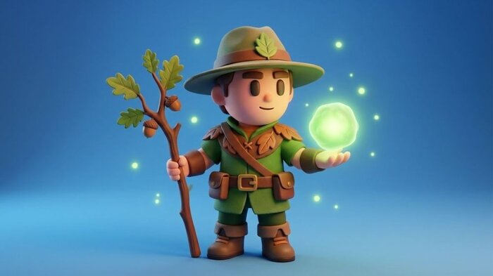 Герой, связанный с магией природы. В облике присутствуют элементы зелени, легкая экипировка и изумрудное свечение.