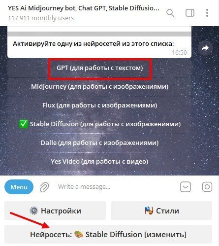 6. Нажимаем кнопку "Нейросеть: ХХХХХХХ" и выбираем ChatGPT