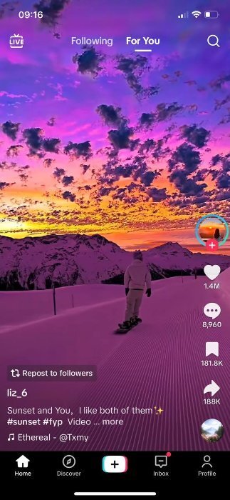 1. Откройте TikTok и найдите ролик, который собрал большое количество лайков и просмотров. Это позволит понять, как продвигать видео в TikTok и какие видео набирают просмотры чаще всего.