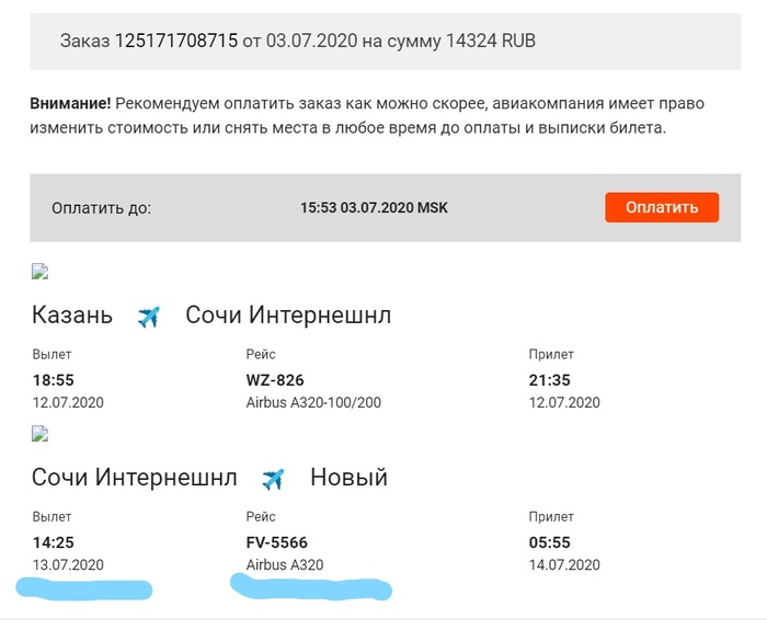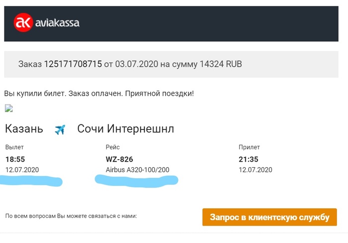 Билет был оплачен, но маршрутная квитанция пришла только до Сочи