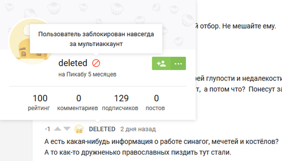 Только попытался заступиться за РПЦ, оказалось что так же мультиакк.