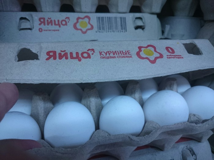 В перекладывании яиц ничего плохого не вижу, потому что некоторые яйца , бывает, бьются. Но чтобы вот так сразу всю пачку? :) к слову они почти в два раза мельче отборной категории. Вот фото соседней упаковки, которую и взяла: