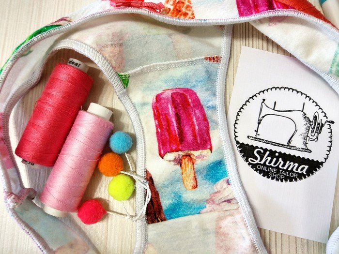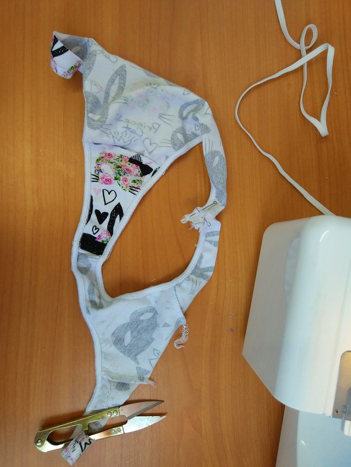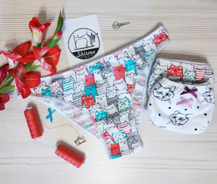 Что касается выкройки, то я строю сама. Рекомендую снять со своих любимых трусиков, чем искать в интернете. Припуск для резинки не нужен!