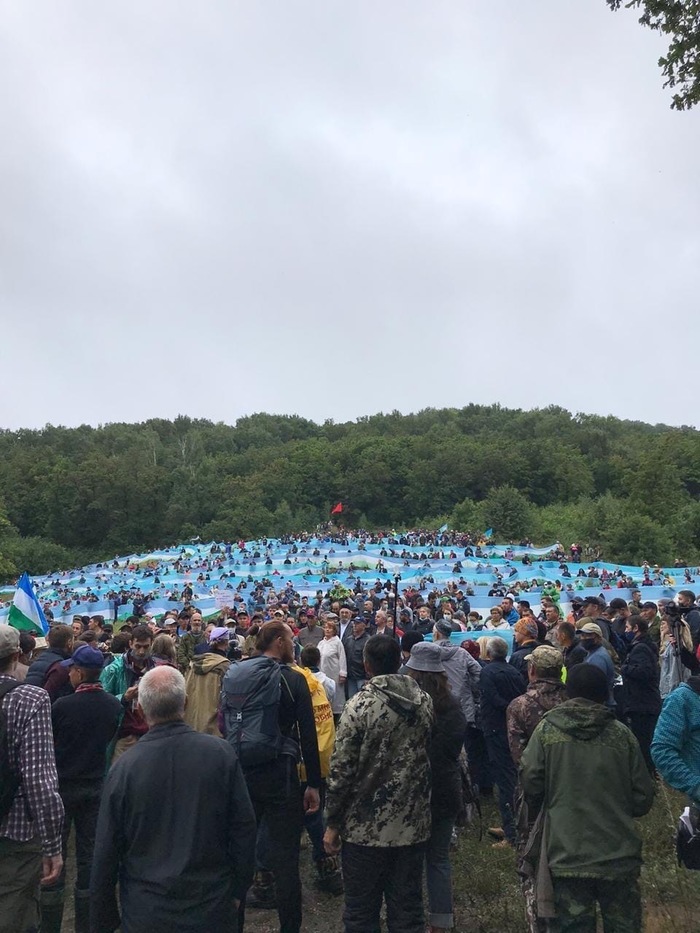 Так вот, 9 августа люди со своего Урала собрались на флешмоб, растянули флаг Башкортостана в защиту Куштау (сразу, что бы не спрашивали: флаг сделали на пожертвования), а ночью на палаточный лагерь напали пьяные дети. Они и сами засмущались, не слушая своих "вожаков" многие хотели встать на защиту горы. Так в Башкирии начался самый крупный конфликт. И прямо сейчас у горы Куштау идёт эта война.
