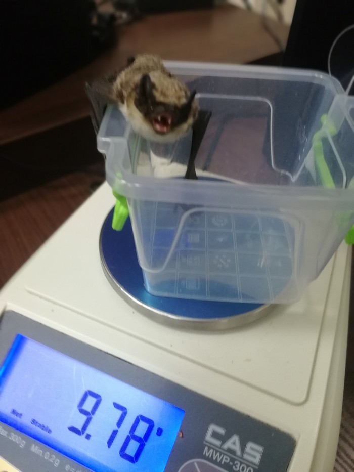 Вторая часть реанимации - оценка состояния. Явных повреждений нет, крылья целые, мозги не в порядке (орёт и ни чего не понимает), но спишем на стресс. Далее нужно срочно и нежно взвесить Пушкина, оценить, так сказать, степень астении. Должен весить для своего возраста грамм 17... А по итогу: