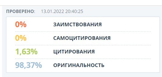 Неплохо, да? А знаете, куда делись мои 1,63 % оригинальности, записанные как цитированное? Они - "шаблонные фразы". Скорее всего словосочетание "скорее всего" тоже снизят оригинальность... Но пока мы всего на 1,63 научили систему выявлять шаблоны))) Пишите сами, пишите с умом, не стесняйтесь цитировать и доказывать свою правоту. Плагиат это воровство, цитирование - это покупка. Не надо переписывать классиков, их нужно повторять. Или же писать лучше чем они.