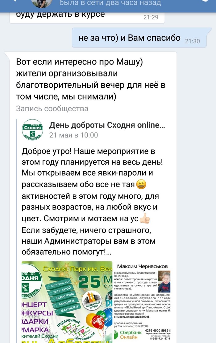 Вкратце - ребенок реально существует, про неё снимали сюжет и собирали помощь на благотворительном празднике. Мама ребенка сама обратилась к этим волонтёрам, увидив их в электричке. Как только будут подробности про сам фонд - обещала сообщить. Сюжет на ТВ будет.