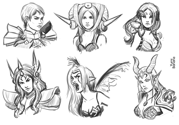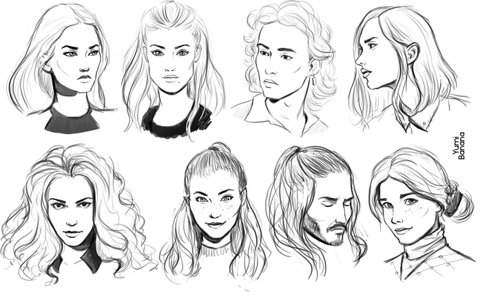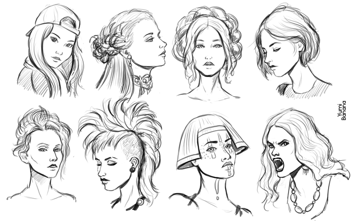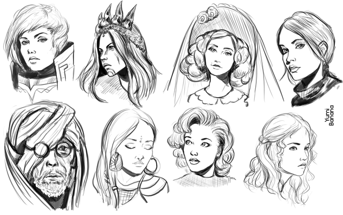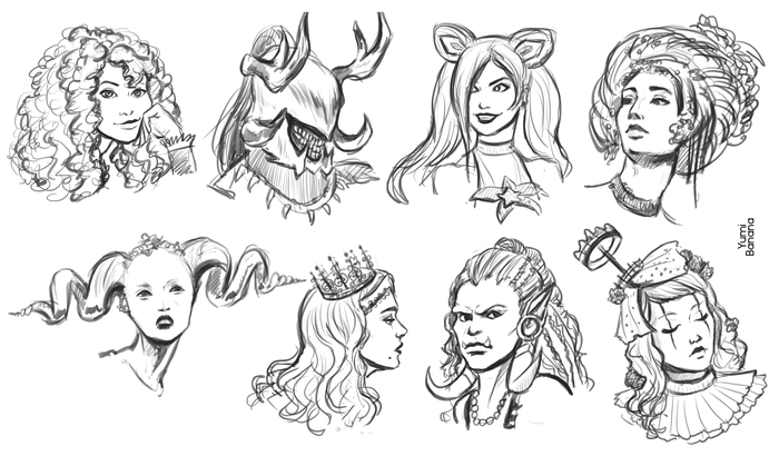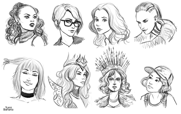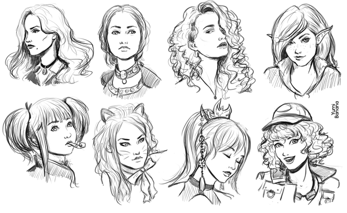 И куча (а точнее - 100 штук) портреты на челлендж 100 heads =) В порядка от конца к началу. Может вы заметите рост скилла, а может и нет) Но рисовать стала их заметно быстрее)