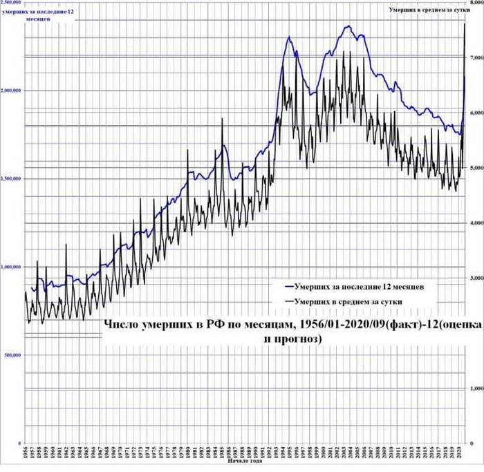(Наш человек.Образованный, учёный , теперь и жизнью)Независимый демограф Алексей Ракша, еще недавно советник Росстата, который был уволен за свою «несистемную» позицию, объяснил, что, на его взгляд, не так с нашей статистикой. Демограф утверждает, что коронавирусный ноябрь 2020 года может переплюнуть не только лихие девяностые, но и стать худшим с 1947 года.