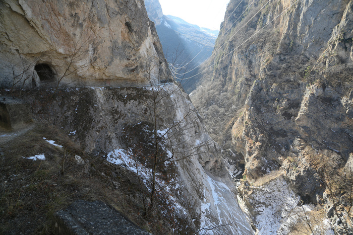 Местные жители Кавказа теснинами называют пространство между высокими обрывистыми горами. Местами оно может быть очень узким – не более 30 м.