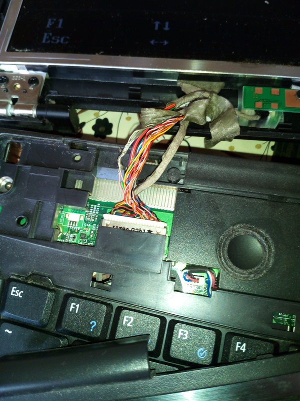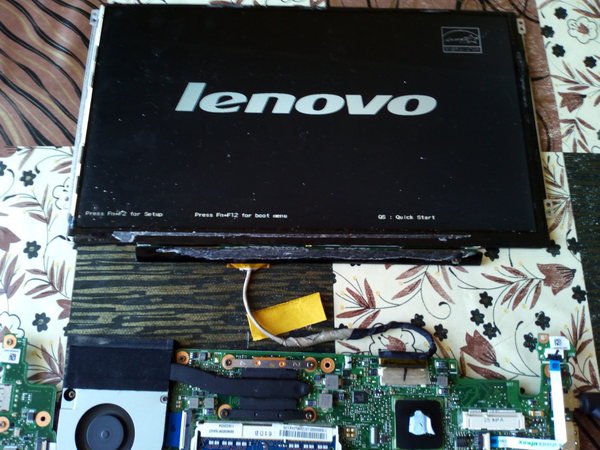На фото незаметно, но картинка то на нем есть. Только стыдливо скрывается под предлогом тайны личной жизни пикселей и прочей ереси. А если крышку помотылять, то иногда и проявляется. Подозреваемый дворецкий шлейф! Вооружаемся инструментом и вскрываем: