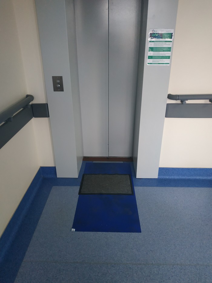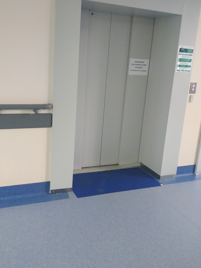 Но вход в один из лифтов уже остальных и ленту можно положить только вдоль. Местные придумали вот такой способ обойти систему. Теперь можно пользоваться и этим лифтом без опаски оставить ему бахилы или упасть (реально липко).
