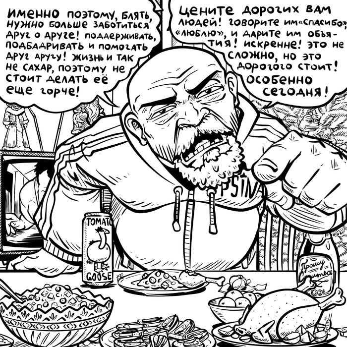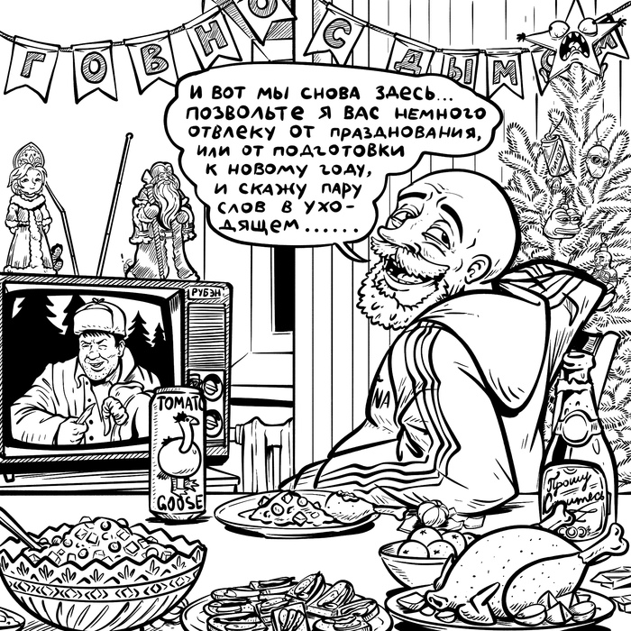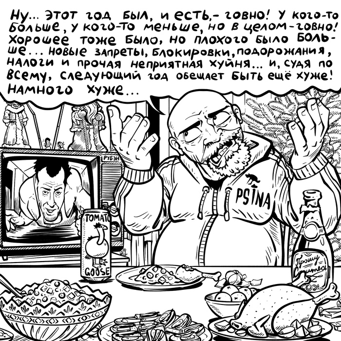 Случилось страшное... Вчера рисовал новогодний комикс, а ночью пришли правки по макету по работе... В итоге ночью пришлось поработать, вместо рисования жабы. Я немного поспал, дорисовал комикс, и у меня осталось всего 3 часа на жабу, так как через пол часа я собираюсь, и уезжаю к матушке резать салаты. Хреновый из меня тайм-менеджер, кароч... Штош... Я знаю, что многие ожидали увидеть огненную лошадь, но увы... Поэтому постараюсь компенсировать это комиксом и следующей средой, ибо сейчас у меня уже не осталось ни сил, ни времени.