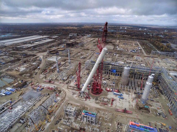 В 2016 смонтировали первые колонны оборудования, некоторые колонны достигали массы 1000тонн.
