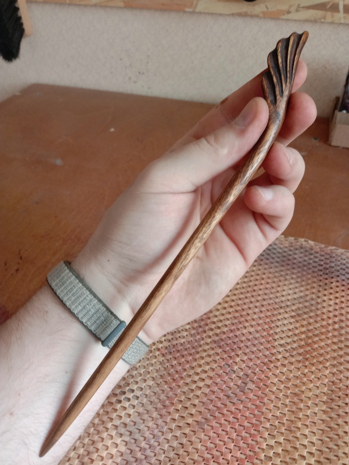 Вторую попросили сделать подлинее, для длинных волос. Взял акацию и прииступил.