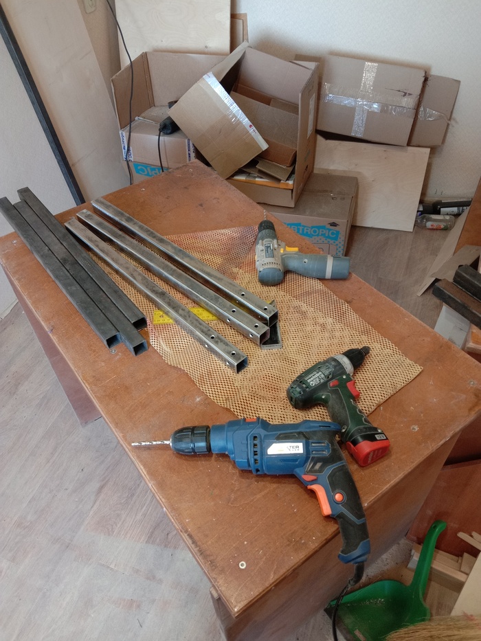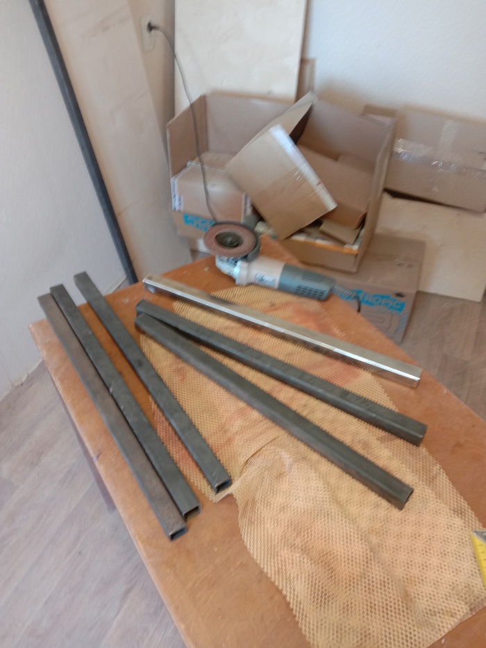 Всё это безобразие будет стоять на 6-и ножках из профильной трубы 30х30 мм. Режу, зачищаю.