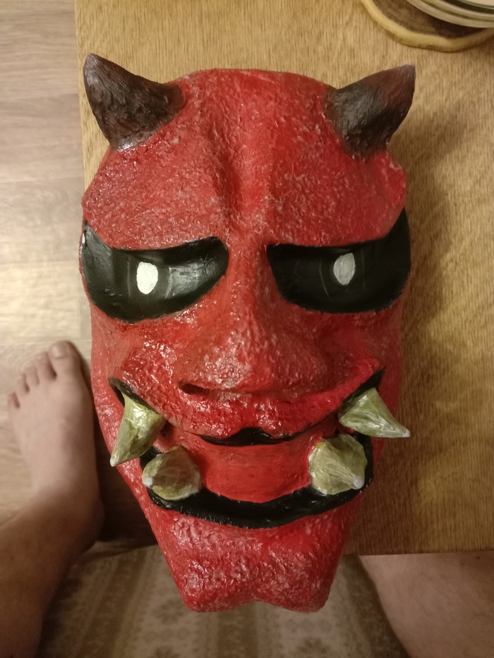 Как-то так) Вышло криво-косо, но я доволен) Маска маленькая, декоративная, на стенку повесить, не более) Спасибо за внимание)