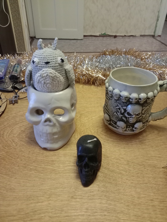 А внутри куча всякой разности) Особенно понравились черепушки и вязанный Тоторо)